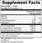 Ingredients: Fish oil concentrate, Eicosapentaenoic acid (EPA), Docosahexaenoic acid (DHA), softgel (gelatin, glycerin and water), Vitamin E.