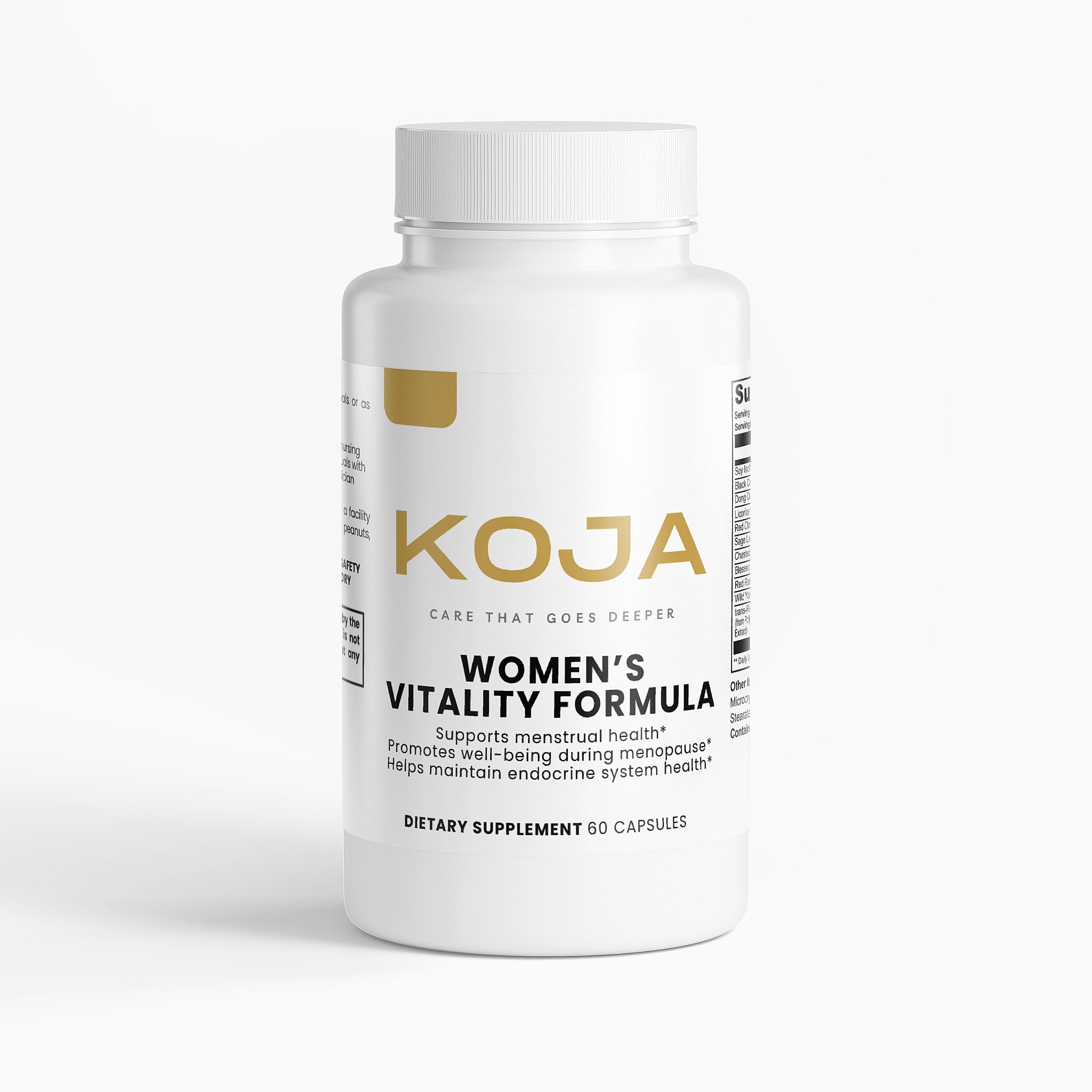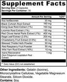 This formula also contains Sage Leaf, Chasteberry, and Wild Yam, traditionally used to support menstrual and menopausal wellness. Additionally, Soy Isoflavones and trans-Resveratrol provide plant-based compounds that help maintain the body's natural balance. Together, these ingredients work to support women’s vitality and well-being in a natural and gentle way.