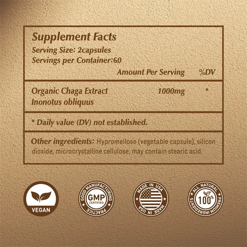 Chaga Mushroom Capsules – Immune, Energy & Digestive Support | Non-GMO