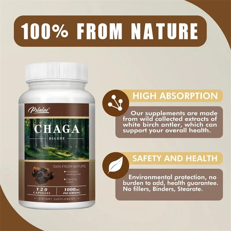 ⭐ Chaga Mushroom Capsules – Digestive Health, Energy & Immune Support | Non-GMO