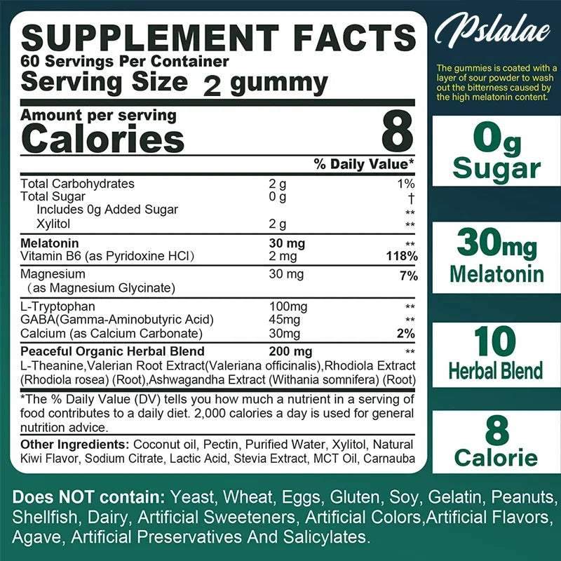 Wake up rejuvenated, energized, and ready to conquer your day with Pslalae Melatonin Sleep Gummies – your nightly companion for the restorative sleep you deserve.