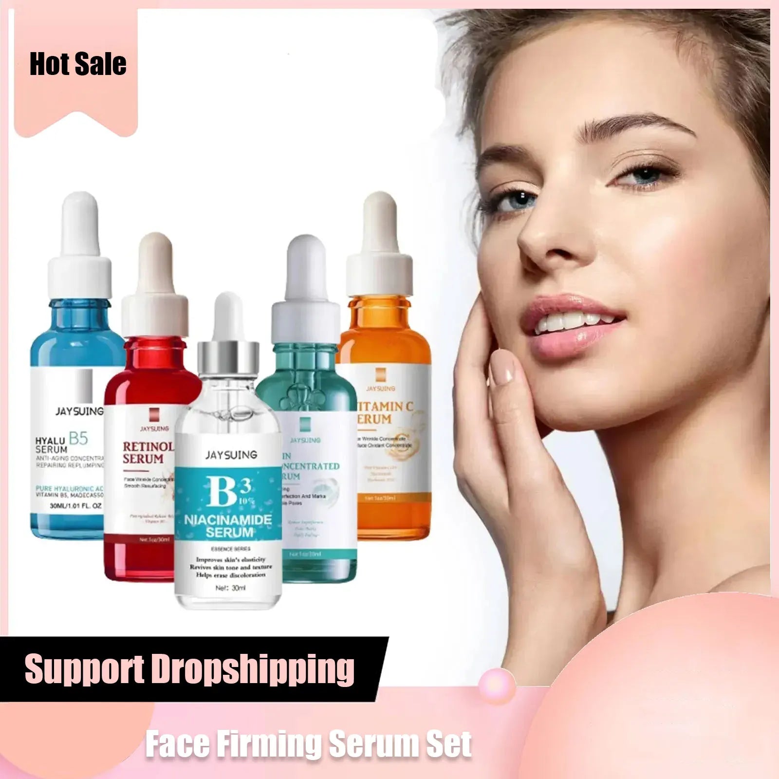 Transform your skin with the ultimate multi-serum set from Jaysuing, designed to target wrinkles, dark spots, acne, and enlarged pores — all in one powerful 30ml package. Combining Retinol, Vitamin B3 (Niacinamide), Hyaluronic Acid (B5), and Vitamin C, this advanced formula revitalizes your complexion, leaving it smooth, firm, and radiant.