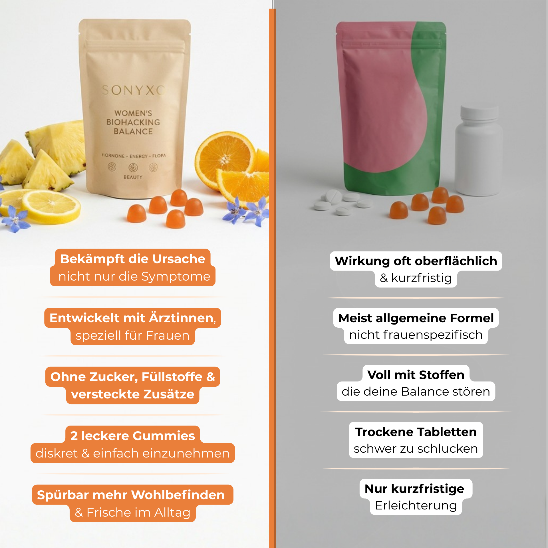 With high-quality ingredients, SONYXO™ supports the natural balance and works from the inside out – against unpleasant odors.