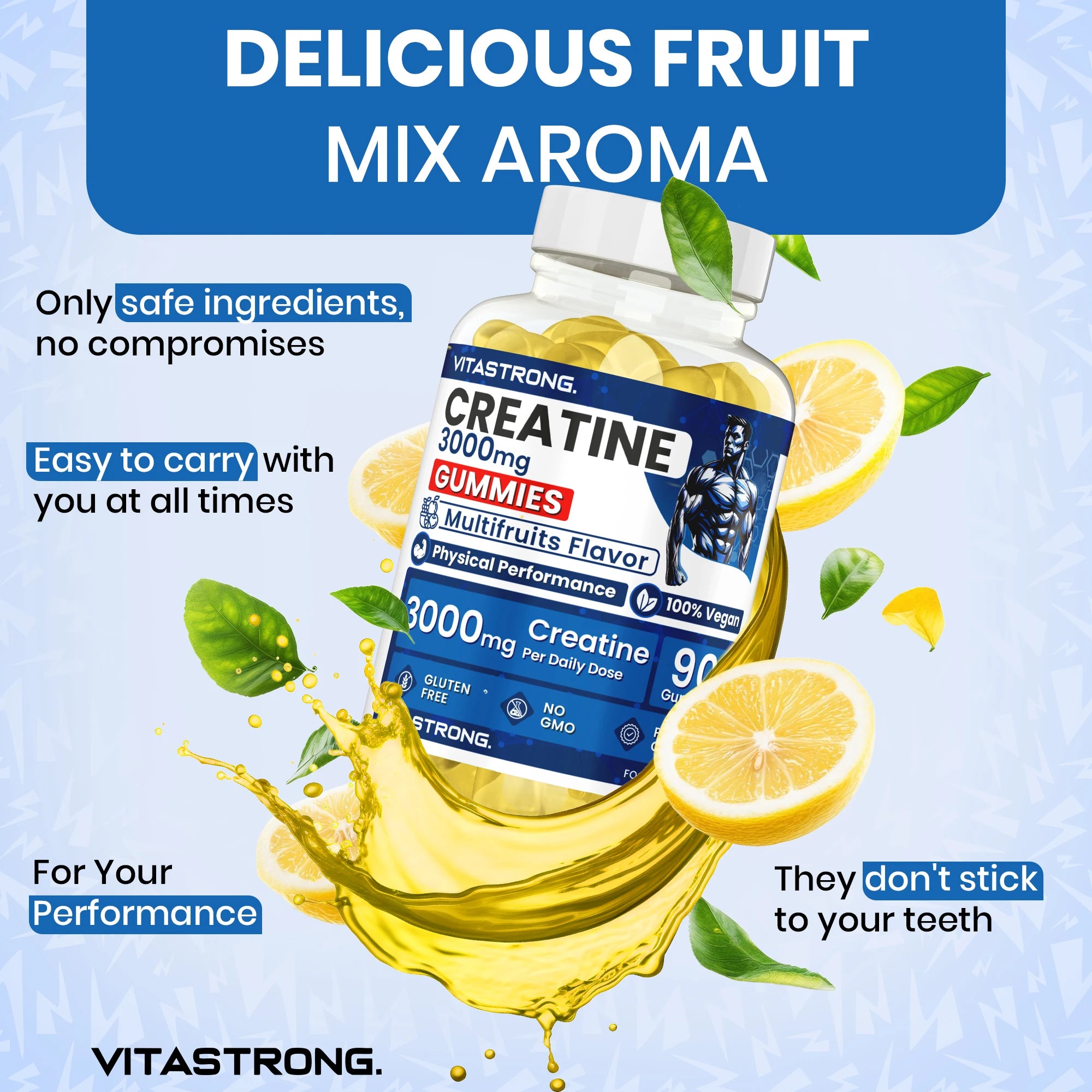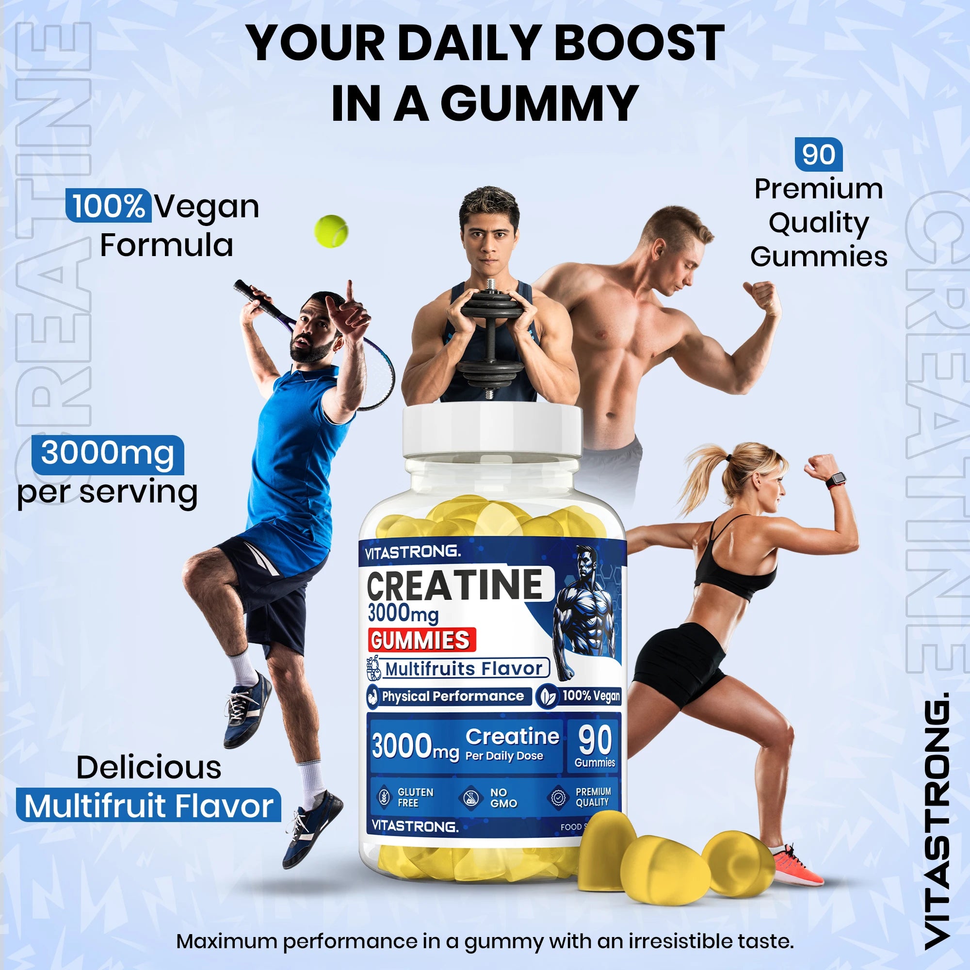 ⭐ Vitastrong Creatine Gummies – 3000mg Vegan, 90 Count for Muscle Strength, Endurance & Recovery, Sugar-Free, Gluten-Free & Non-GMO